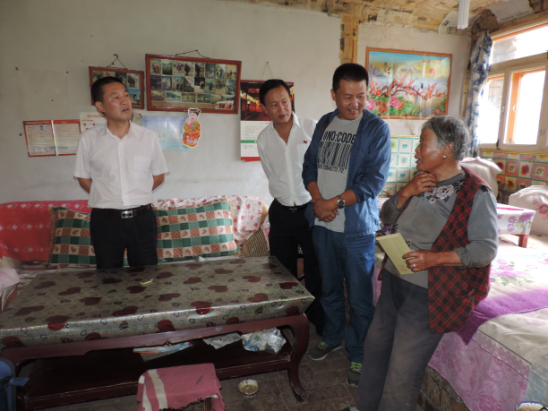 朝物開投公司副總經(jīng)理喇軍民、物產(chǎn)汽貿(mào)公司董事長張建軍、機電市場公司市場部部長王功明以"三幫一"的方式結(jié)對幫扶絕對困難戶楊生福。楊生福,男,藏族,61歲,家中三口人,本人肢體四級殘疾,妻子四級殘疾(羅鍋),兒子30歲,現(xiàn)安排在當(dāng)?shù)貜氖伦o林員工作,未結(jié)婚,住房為土木結(jié)構(gòu),此次結(jié)對幫扶為其送去了600元慰問金。