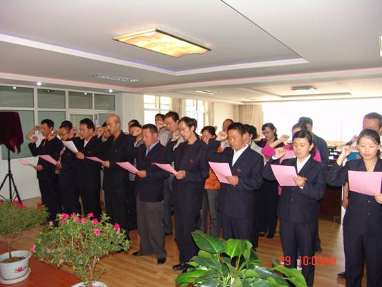 我宣誓:"我志愿加入中國共產(chǎn)黨,擁護(hù)黨的綱領(lǐng),遵守黨的章程,履行黨員義務(wù),執(zhí)行黨的決定,嚴(yán)守黨的紀(jì)律,保守黨的秘密,對黨忠誠,積極工作,為共產(chǎn)主義奮斗終身,隨時準(zhǔn)備為黨和人民犧牲一切,永不叛黨"。6月29日上午10∶00時,17名新加入黨組織的中國共產(chǎn)黨預(yù)備黨員、所屬各黨組織書記、老黨員代表等30余人的莊嚴(yán)宣誓,標(biāo)志著青海物產(chǎn)系統(tǒng)慶祝建黨91周年系列活動正式展開。