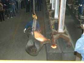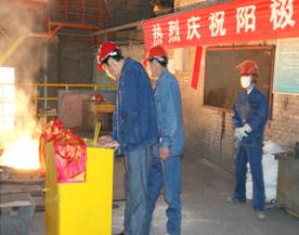 2012年7月7日上午11點零19分,青海物產(chǎn)工業(yè)投資有限公司10萬噸電解鋁/年升級改造項目,簡易陽極組裝車間大門前鞭炮齊鳴。青海物產(chǎn)工業(yè)投資有限公司黨總支副書記、青海長春炭素有限公司總經(jīng)理王松華,公司常務副總經(jīng)理、項目副總指揮常海寧,工業(yè)投資和長春炭素公司副總經(jīng)理姜紅萍,公司副總經(jīng)理張秉瑜,總經(jīng)理助理范登福等公司領導和各車間、部室的職工出席了簡單的點火澆鑄儀式。王松華同志按下了點火按鈕鄭重宣布澆鑄正式開始。當中頻爐工將第一爐鐵水倒入抬包時,標志著新陽極組裝車間正式投產(chǎn)運行。